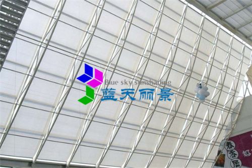 遮阳帘,该系统专为水平或倾斜遮阳系统而设计,为双马达卷拉系统。通过对遮阳面料的卷拉来实现的实现遮阳功能。系统采用两个电机,分别装在面料和拉绳的两端,通过电子控制器调节主副电机的扭矩来调整面料的张力。适合于办公楼、大型展厅、展馆、酒店大型采光顶的遮阳.