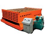 轻质墙板生产设备主要是挤压式轻质墙板成型机和传统工艺的成组立模成型机,但都存在一定的缺点。如挤压式轻质墙成型占用场地大,对场地的夹带度要求很高(一般为水泥混凝土地面,平整度误差要求在2mm之内)很难做到,而且水泥混凝土地面在使用过程中会自然变形,难以保养。挤压式成型机的生产工艺要求为半干料,水泥不能充分发生水化反应,造成墙板强度降低,容重过高。在生产过程中两面布筋,下面人工拉紧,上面随机卷出,使墙板两面的应力不同,造成墙板变形。