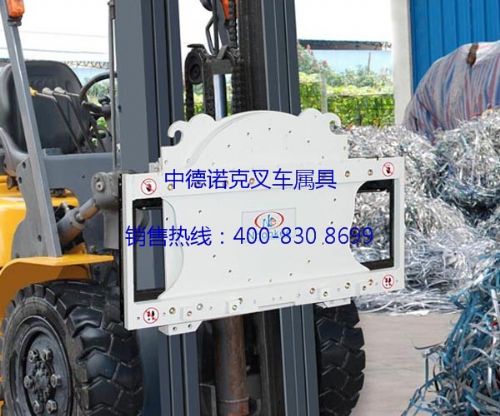 叉车属具中德诺克旋转器通常与货叉式料斗等容器配合使用,360度快速翻转容器里的货物。