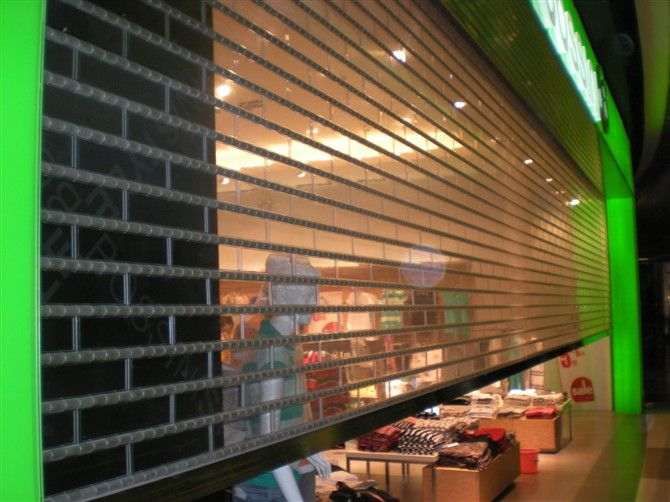 水晶卷帘门,该产品选用进口原料PC(防弹胶)制造而成,具透明、抗雨、隔尘、防盗等效果。用其制成的卷帘门在国外的商业街区广泛使用。成为传统卷帘门的*新替代品,其新颖设计及出众品质备受设计师及用户的赏识。用它装饰店铺\橱窗可以令您的商品有24小时的广告效应,透出琳琅满目的商品,从里到外赏心悦目。水晶卷帘门的透光方式也增强了城市的现代化气息,在香港、台湾及西欧等国家的商业街区已经广泛使用。是大型商场、时装精品专卖店、银行、地铁站、电信、高级会所及别墅阳台等追求安全、典雅、时尚气派场所的理想之选。