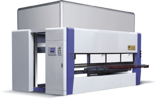 金属漆喷涂、清面漆喷涂,完成后进行流平干燥后覆膜防止灰尘污染再自动下料进入下工序生产。