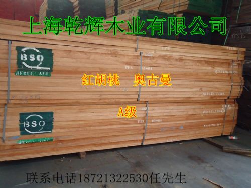 4)物理性能:光泽强,纹理直,稳定性强,结构细而均匀,干缩中,略耐磨,干燥快,无缺陷。气干密度大约为0.48g/cm3,其中高山上的奥古曼密度在0.50g/cm3以上。