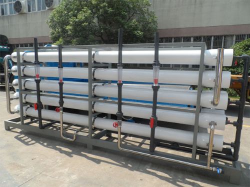 反渗透设施生产纯水的关键有两个,一是一个有选择性的膜,我们称之为半透膜,二是一定的压力。 简单地说,反渗透半透膜上有众多的孔,这些孔的大小与水分子的大小相当,由于细菌、病毒、大部分有机污染物和水合离子均比水分子大得多,因此不能透过反渗透半透膜而与透过反渗透膜的水相分离。在水中众多种杂质中,溶解性盐类是*难清除的.因此,经常根据除盐率的高低来确定反渗透的净水效果.反渗透除盐率的高低主要决定于反渗透半透膜的选择性。目前,较高选择性的反渗透膜组件除盐率可以高达99.7%。