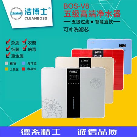 洁博士BOS-V8环保净水器有效去除水中各种细菌,病毒及重金属等有害物质,采用进口原配件,超静音隔膜