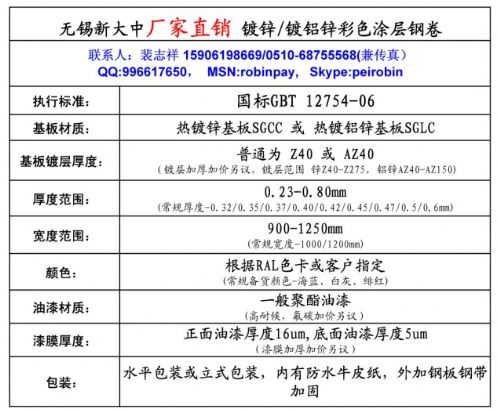 (镀层加厚加价另议,镀层范围 锌Z40-Z275,铝锌AZ40-AZ150)