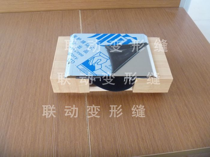 金属卡锁型内墙变形缝——由一块自由移动的中心板来实现变形,中心板压紧在两侧铝合金基架之间,在建筑物发生伸缩变形时能保持其水平状态。
