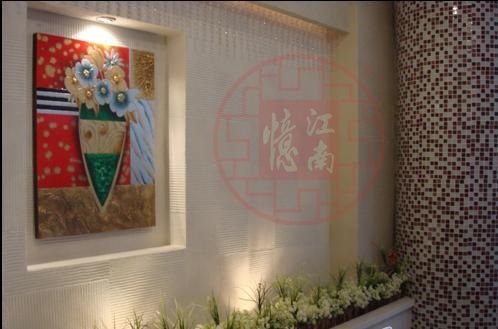 和丝网印刷等工艺,能将普通材质的各类基面顿时产生篷壁生辉、晶莹璀璨、风格高雅华贵的装饰效果。“忆江南液体壁纸”特别适合各类顶部造型、