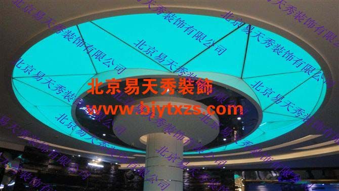 <4>、易天秀软膜天花,柔性天花,拉蓬天花,拉展天花较好的经济性。由于膜材具有一定的透光率,白天可减少照明强度和时间,因而比较节约能源,降低了长期使用费用,同时夜间