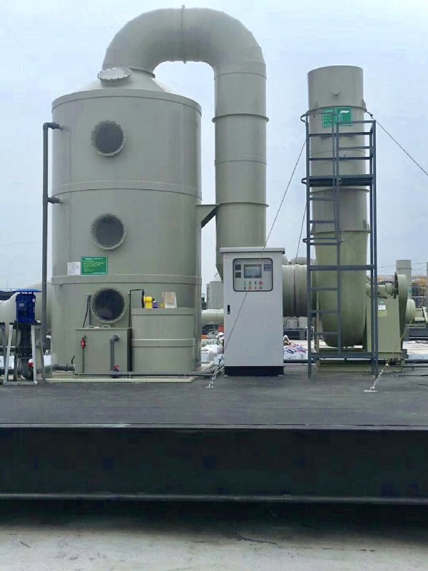 填料段,废气在塑料球打滚再与吸收液起中和反应,使废气浓度进一步降低后进入脱水器段,脱去液滴,净化后的气体排出大气。