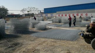 低碳钢丝或者包覆PVC的以上钢丝使用机械编织而成,使用格宾网制作而成的箱型结构就是石笼,又称铅丝石笼。根据ASTM和EN标准,所使用的低碳钢丝直径根据工程设计要求而不同。一般介于2.0-4.0mm之间,格宾网钢丝的抗拉强度不少于38kg/m2,金属镀层重量一般高于245g/m2,格宾网片的边缘线直径一般要大于网线直径。其双线绞合部分的长度不得小于50mm.以保证绞合部分钢丝的金属镀层和PVC镀层不受破坏。