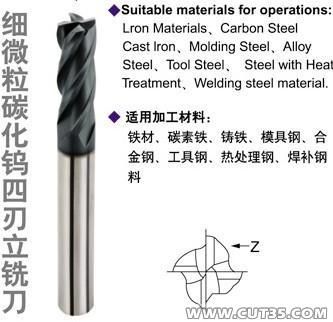 稼动率,节省制作时程。4刃平头铣刀以平面切削铣削为主.
