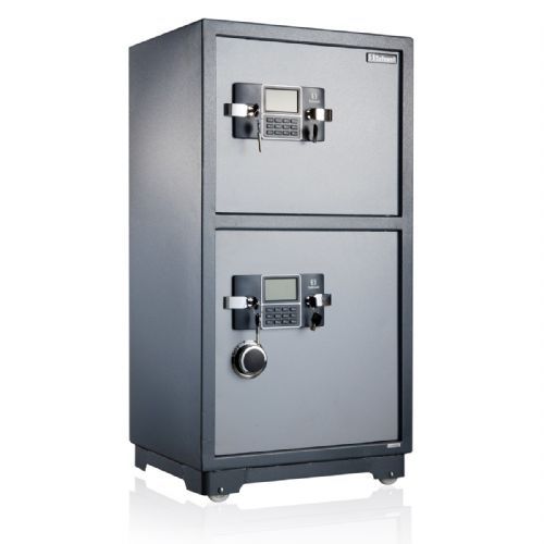 1、保险箱箱体钢板全部采用优质纯钢板材,更坚固,箱体厚度达2mm门板厚达10mm。三边实心整块金刚打栓头。在门板、门栓的关键部位增加防钻功能,更安全,保险箱箱体表面精美喷塑,全新面板设计,更符合时代潮流。