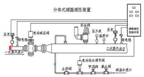 3、减温减压系统:把减温系统和减压系统合二为一,使装置的外形尺寸减小而技术复杂性增加。