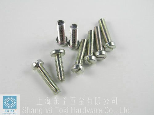 螺钉。开槽盘头螺钉是开槽螺钉种类之中使用*广的一种。 开槽沉头螺钉主要用于不允许钉头外露的场合。