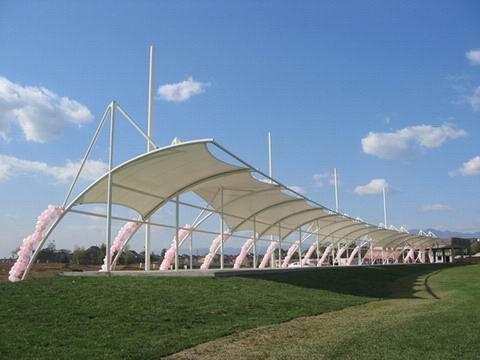 膜结构轻巧、别致的造型在停车场及候车厅的建设中担当了重要角色,除了满足防风雨、防日晒等基本功能外,并有较好的标识招揽效果,展现了人们个性化的一面。