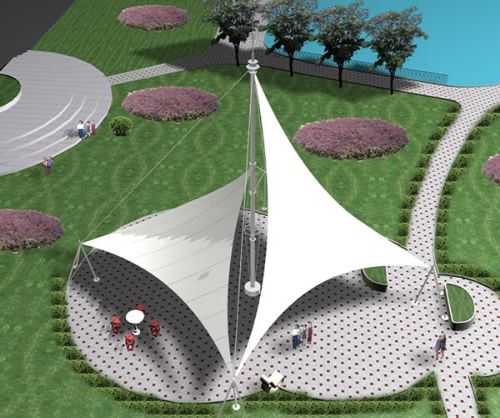 膜结构;反向弯曲形状,或者是具有张力并且稳定的双弯曲鞍形形状。张力和稳定性来自于膜平面及其线性边界的机械预应力。