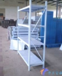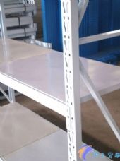 冲床冲孔、再根据客户*高度切断而成,孔距离以50mm距离可调节高度,立柱圆孔用来连接层板用;货架层板采用优质冷板、经开平、纵剪、折弯成型、焊接加强筋制作而成。