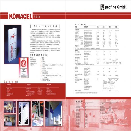 柯美赛 Komacel 是一种由硬质PVC制成的类似三明治结构的结皮发泡板,包括两个坚硬表面层及一个海面状中心,是由同种材料根据结皮发泡工艺由一道工序完成生产的,在同类产品中排名世界*一。