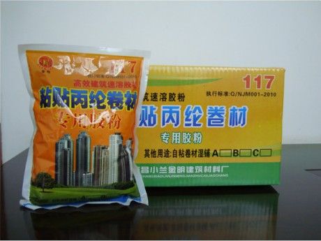 以往粘贴丙纶卷材不论楼层多高,都要人工抬107浇水上楼,每桶约50KG重。费时费力,及不方便。本公司研制的丙纶卷材*胶粉,彻底改变了以往的操作方法。只要用改胶粉一包(500克),即能代替一桶50公斤