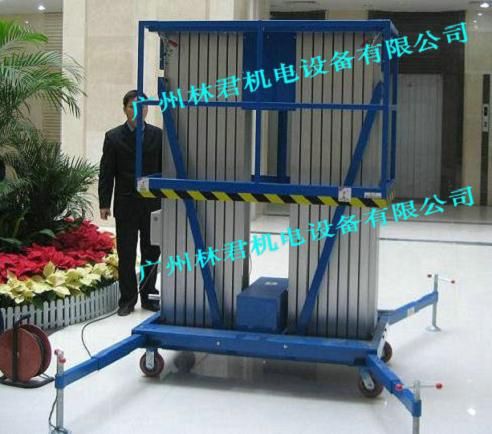 此款电动升降机,广泛用于工厂、宾馆、饭店、酒店、餐厅、物业管理、广告公司等高空装饰、高空维修、高空清洁作业。