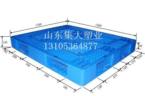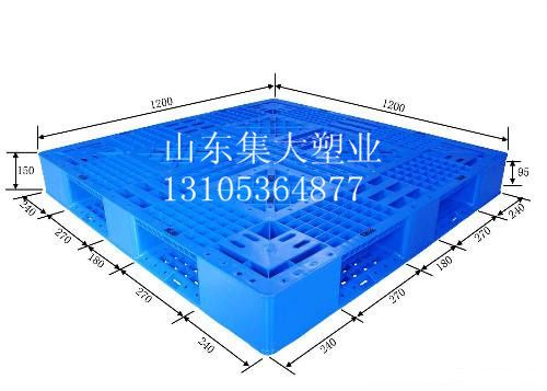 另外,可根据客户要求定做相应的塑料托盘,竭诚为您服务,并且具有完善的售后服务。集大售后服务郑重承诺:非人为损坏,以旧换新,一年内一片换一片,两年内两片换一片,三年及以后三片换一片。欢迎代理商,批发商合作来电垂询。