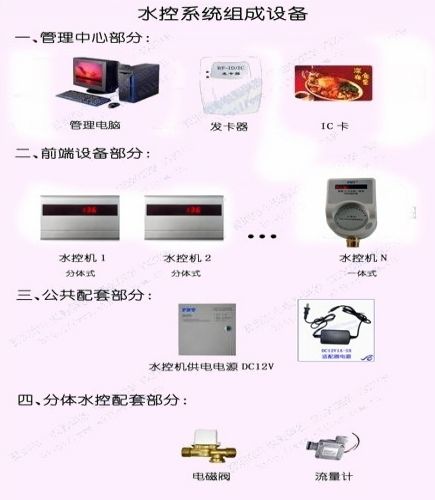 电磁阀装已安装在控器里)和分体水控机(电磁阀、流量计、控制器分别安装)两种。