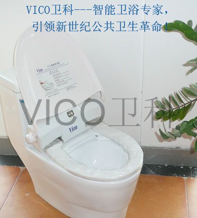 马桶盖(VICO Sanitary Toilet Seat),通过内置的微电脑控制器自动的更换卫生薄膜(卫生薄膜套准 确旋转一周),使用过的卫生薄膜在卷走前划破,与未用过的卫生薄膜区分明显,强调薄膜使用的一次性.让使用者更为放心!