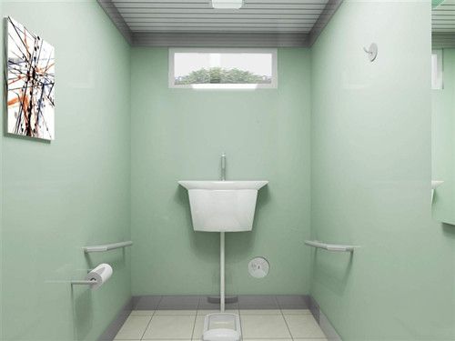 墙体材料:厕所室内外装饰均采用绿色环保建材,外观造型美观大方,线条流畅,能体现现代气息,与现代城市景观相协调。
