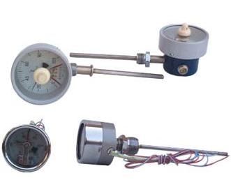 温度计是利用温度变化时带动触点变化,当其与上下限触点接触或断开的同时,使电路中的
