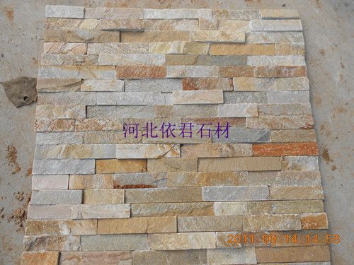 园林地铺黄木纹冰裂纹石材 黄色板岩碎拼石质地坚硬
