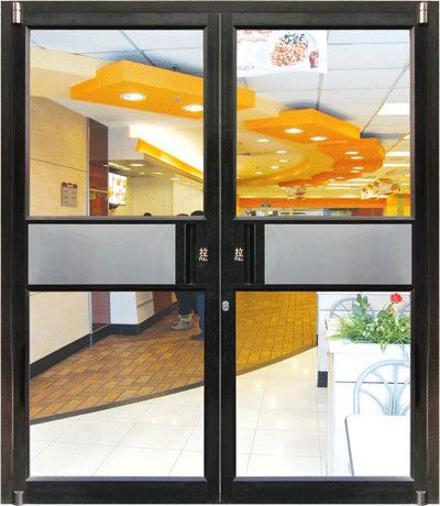 近二十年来,随着肯德基连锁店的推广应用,越来越多的连锁店,办公楼、酒店、超市等不同类型的客户注意并喜欢上了这种门体。门的中间采用独创广告位设计,提升了产品的形象,让您的产品尽显眼前。它具有外观高贵典雅,制作工艺特殊,密封性好,坚固耐用,安装方便等特点。