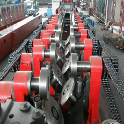 檩条机采用同一套设备通过手动简单无级调节就可生产 C/Z型檩条的各种规格,换规格时无须更换成型辊。生产过程采用自动控制方式,可根据输入的檩条长度、纵向孔距、数量等参数进行自动冲孔、切断、成型。
