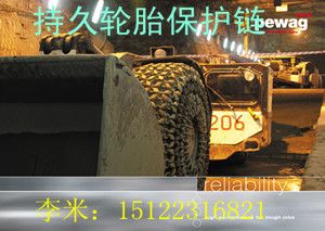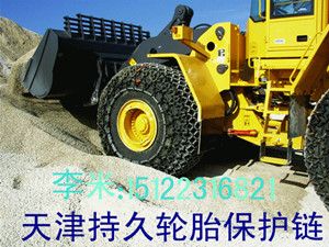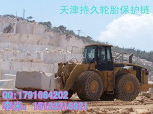 装载机,重型载重汽车等轮式工程机械上,用于提高轮胎使用寿命,减少轮胎维修更换工作,降低施工费用,加快工程施工进度目前轮胎保护链广泛用于:采石场、采矿场、隧道施工、筑路、筑坝施工的作用。适应于各种恶劣的施工环境。