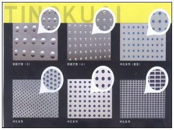 孔型:长方孔、方孔、菱形孔、圆孔、长圆孔、六角形孔、十字孔、三角孔、长腰孔、梅花孔、鱼鳞孔、图案孔、八字网、人字孔、五角星形孔、不规则孔、起鼓孔等。