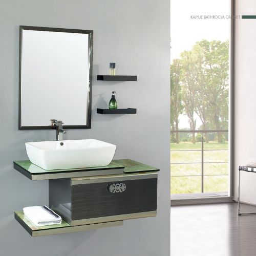北欧时尚经典不锈钢浴室柜组合镜柜大理石面陶瓷盆