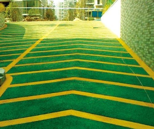 刚玉材料混合组成。施工完成后的坡道,是一个耐磨性好,构造深度大,行车无震动的涂层系统,达到行车的舒适和防滑效果。性能特点: 表面粗糙度均匀,车辆行驶时无明显震动; 表面摩擦系数大,车辆行驶也很安全; 坡道构造的深度大,不易积水、结冰; 坡道线条具有导向性,显目、安全; 抗压强度高,表面硬度好、耐磨性好; 良好的耐候性,色彩美观,使用寿命长; 施工周期短,保养时间短,易于维护。 适用范围: 无震动