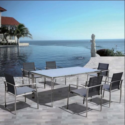 不锈钢网布椅、不锈钢玻璃台(四椅一台)