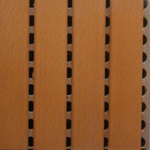 纤维板正面开形式立体三角或圆柱形的槽,背面开圆孔的结构吸声材料,饰面喷漆(可按客户要求选择颜色),背贴防火吸音布。