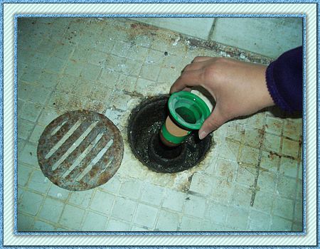 在PVC地漏内,将套好硅胶圈的《爽佳家》牌双重防臭地漏芯安放好,再盖好箅子,就可以正常使用了!).