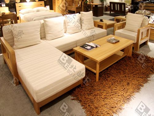 绿森林系列榆木转角沙发