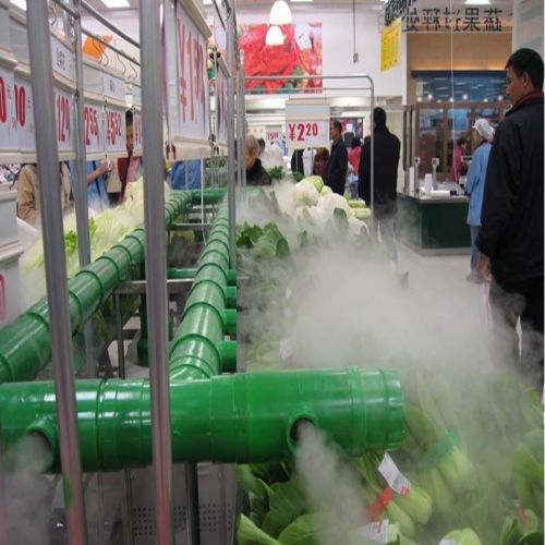 喷雾机采用电子超频震荡(震荡频率为1.7MHz,超过人的听觉范围,对人体及动物绝无伤害),通过雾化片的高频谐振,将水抛离水面而产生自然飘逸的水雾,不需加热或化学剂而产生1-10μ水颗粒漂浮于空气中,达到空气湿润并产生负离子效果。蔬菜瓜果首先给人以鲜明印象的,就是色泽。蔬菜瓜果尽管色彩丰富,但由于起色素成分多数不稳定,极易受温湿度等因素影响发生改变,*终影响瓜果蔬菜的色泽效果。而在各种大型超市冷冻柜中运用喷雾系统可抑制蔬菜瓜果的呼吸作用,减少水份散失,降低代谢水平,保持蔬菜果瓜的色泽香味,抑制微生物繁殖,防止腐烂。