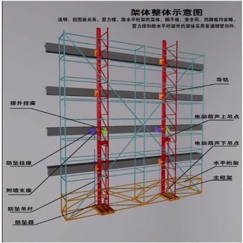 6、安全可靠:低处组装、低处拆除,防倾防坠设备齐全,架体内升降操作;