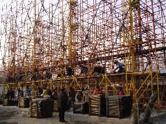 1、节省材料:仅搭设4~5倍楼层高度,大幅度减少脚手架的使用量;
