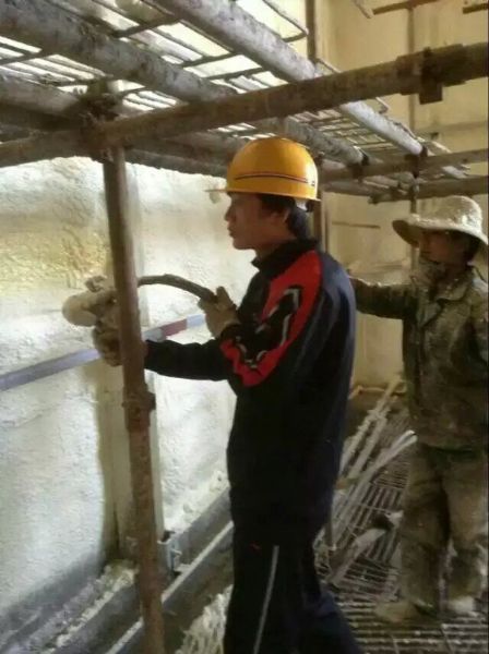 阻燃剂等)经高压发泡设备现场喷涂发泡为保温层,以聚合物干混