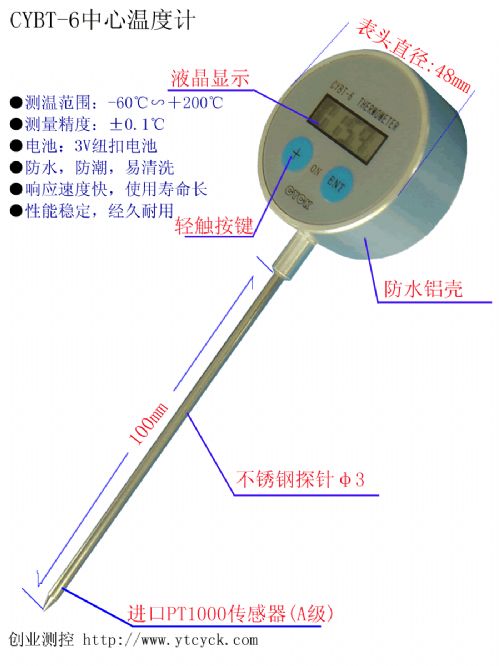 测温范围:-60℃∽+200℃(可扩展至:-100℃∽+300℃) 分辩率:0.1℃