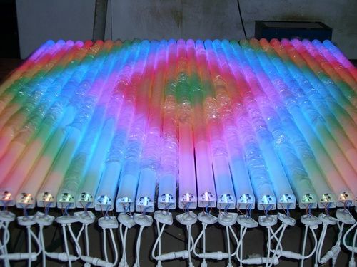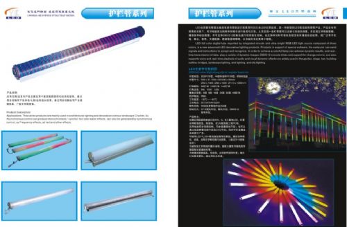 该产品主要用于大型建筑外墙,花园,景观等工程照明。可自控,自联机,可实现七色同步跳变,渐变,追逐,流水,流星;七色常亮,DMX256级灰度调光,多台连接使用可编辑上千种不同的效果。