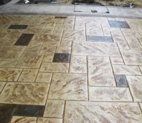 拜石艺术地坪是一种能在混凝土表层依靠地坪强化料、脱模粉、成型模、专业工具以及地坪保护剂,于铺设混凝土时在其面层上创造出逼真的大理石、石板、