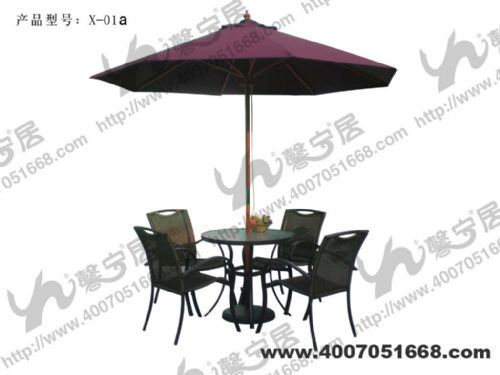 合金钢化玻璃圆桌和四把PVC藤编铝合金椅子以及一个树脂伞座,原价2280,现特价为1580,性价比极高,可用于客厅,宾馆酒店,咖啡屋,酒吧,露台,花园,步行街,房地产推广现场等商务休闲场所。