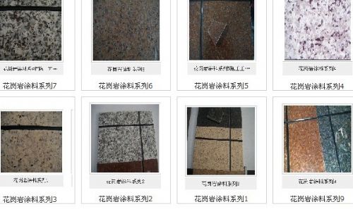 多彩涂料,通过一次性喷出多种色彩形成花岗石的表面效果的涂料。耐候,耐久,抗污性能良好。突破了传统意义上的
