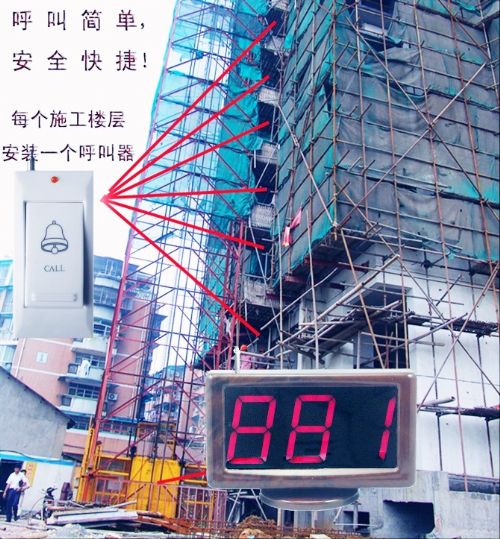 施工升降机进行调度、提高运行效率,北京加迅电子专门开发了施工升降机无线呼叫系统,简称楼层